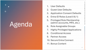 My BSides NoVa talk slides are now posted. My BSides NoVA talk was called “10 Ways to Improve Entra ID Security Quickly” and I focused on the areas that tend to be missed in Entra ID. Downoad Presentation Slides