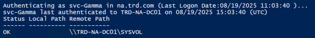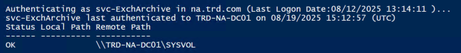 Write-host "Authenticating as $UserName in $domain (Last Logon Date:$($UserInfo.LastLogonDate) )..."