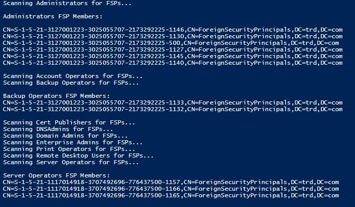 PowerShell script to scan privileged groups for FSPs: